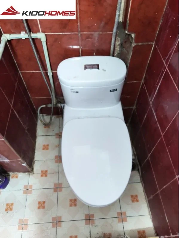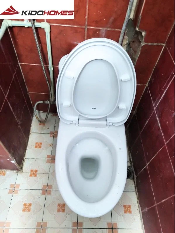 Kidohomes đã khảo sát thực tế và gợi ý dòng bồn cầu INAX nhỏ gọn, lắp đặt thay thế nhanh chóng, không cần đục nền hay thay đổi cấu trúc. Thiết bị được kết nối trực tiếp với đường thoát nước cũ, sử dụng van cấp lại theo chuẩn mới và vận hành trơn tru sau lắp đặt. Tổng thời gian thay chỉ khoảng 2 tiếng, không gây bụi bẩn hay ảnh hưởng đến sinh hoạt trong nhà.